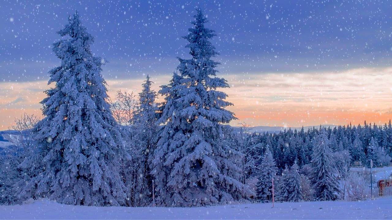 Layer serene snowy evergreens under snowy skies for this holiday nocturne.